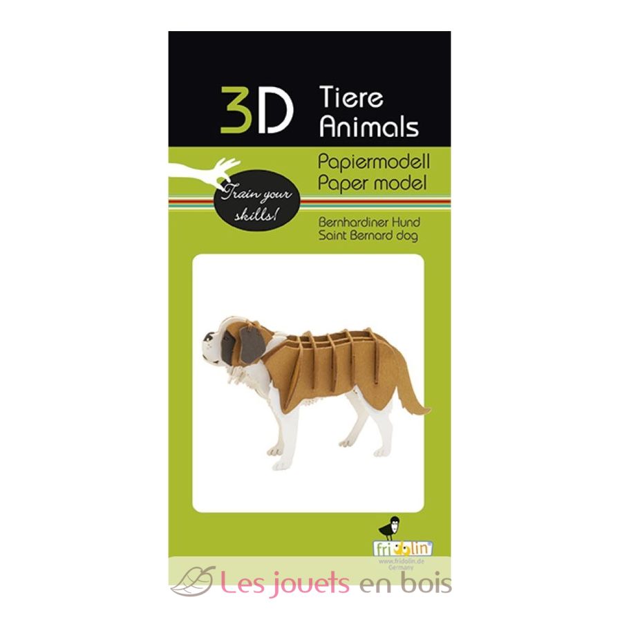 3D Paper model Saint-Bernard dog. Dimensions once assembled: 11 × 7 × 3,5 cm.