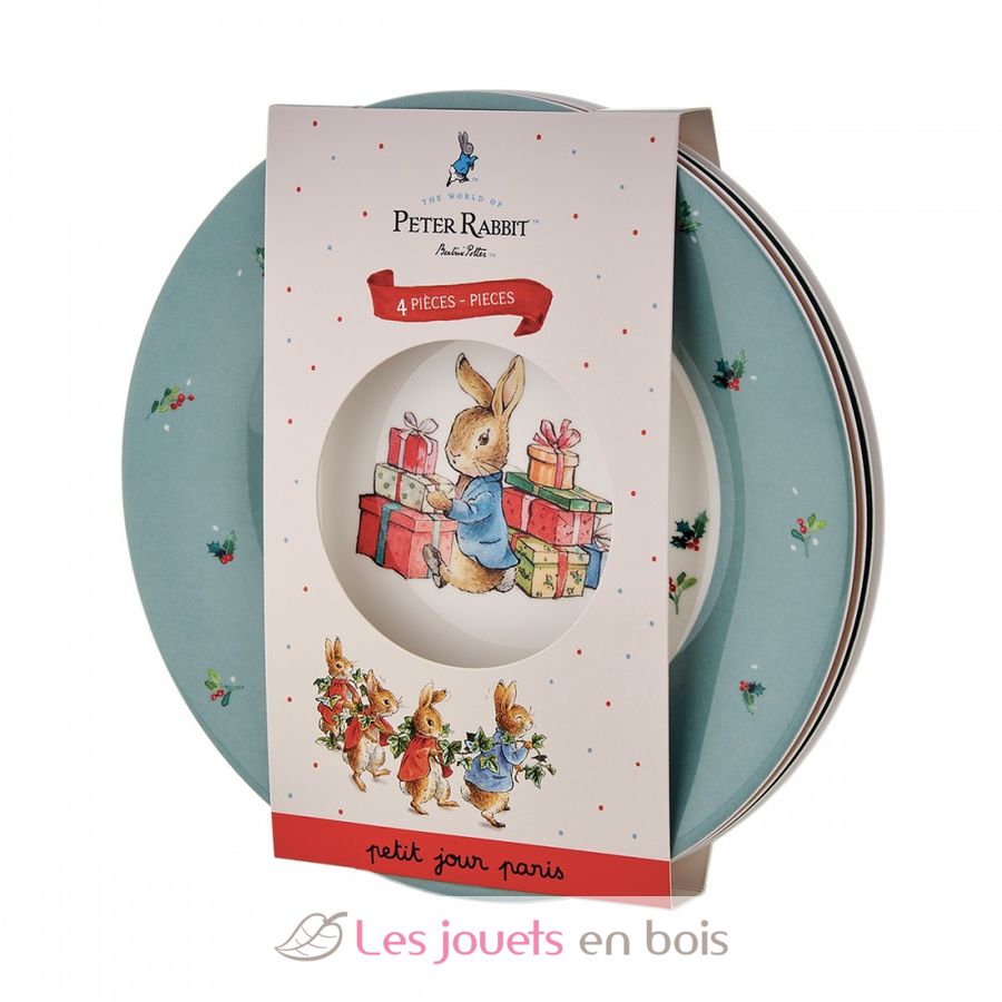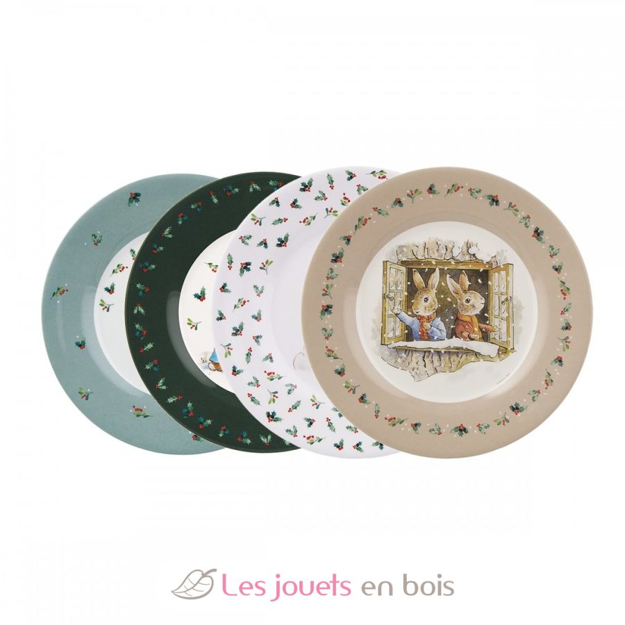 Set of 4 plates Peter Rabbit Christmas diameter 20cm, plates for children made by Petit Jour.
