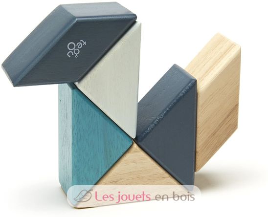 6-Pieces Prism Pocket Pouch Blues, magnetic wooden building blocks made by Tegu.