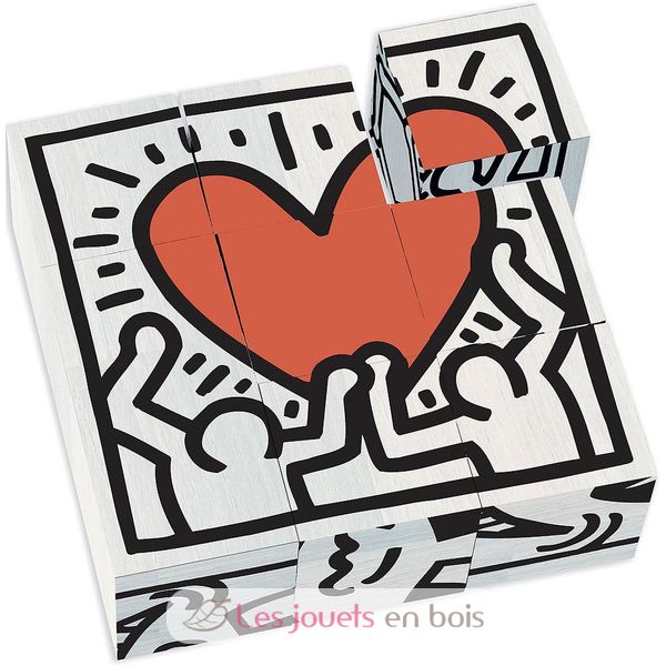 9 wooden blocks featuring 6 iconic drawings by Keith Haring.