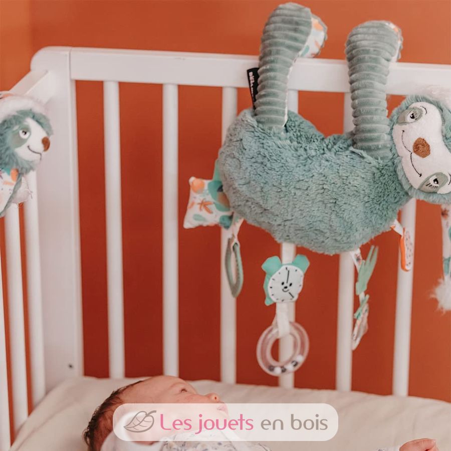 A sloth full of early-learning activities that you take and hang everywhere thanks to its Velcro tabs: on your bed, stroller or even on your arm!