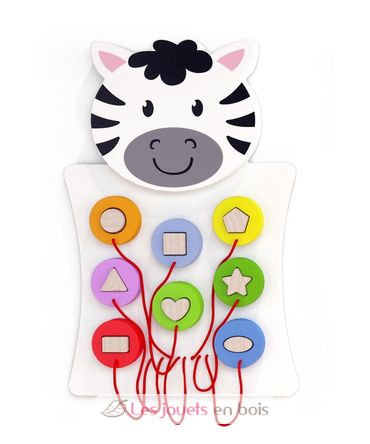Set of wall activity panels to engage children in cross-curricular learning. Panels are styled as a brown horse with wire beads and moving gears, a yellow giraffe with fruit puzzle blocks to mix and complete, and a black and white zebra with colourful shapes to identify and match.
