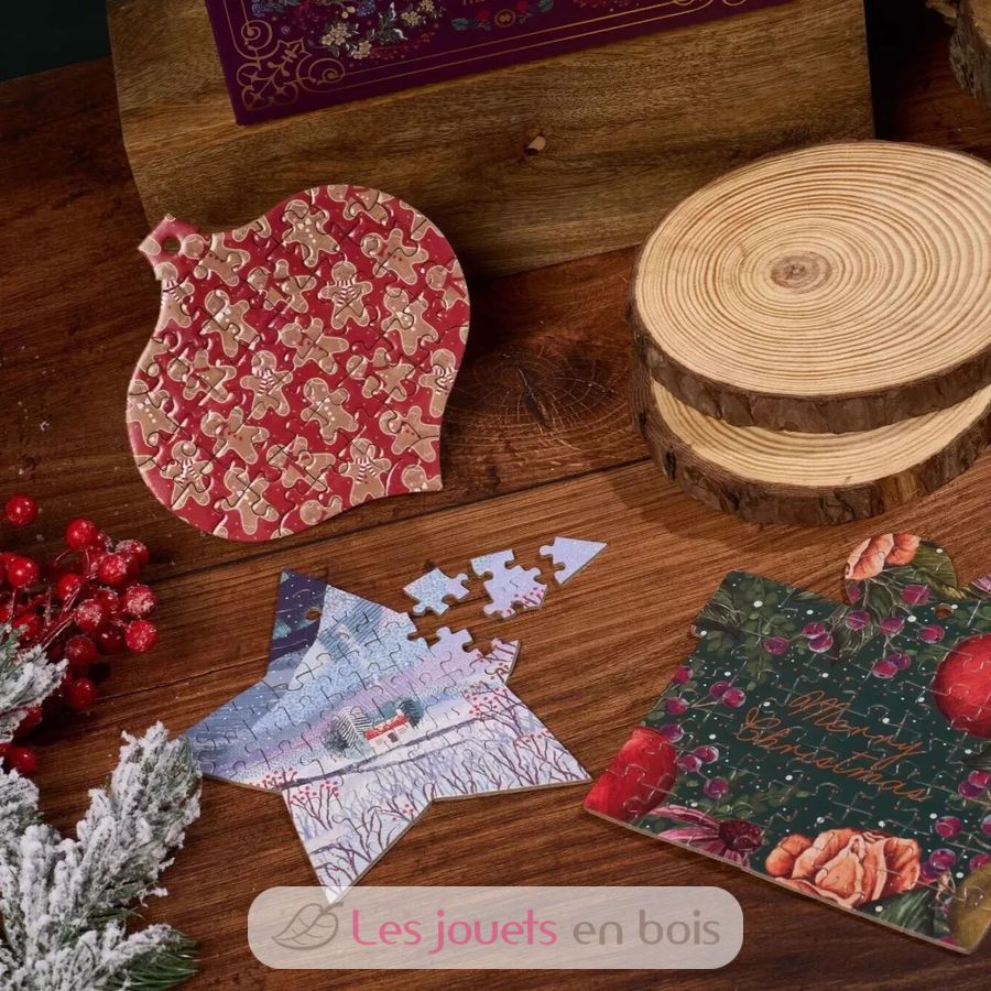 An Advent calendar with 24 mini puzzles to assemble and turn into pretty Christmas hanging decorations or greeting cards. From 7 years old.
