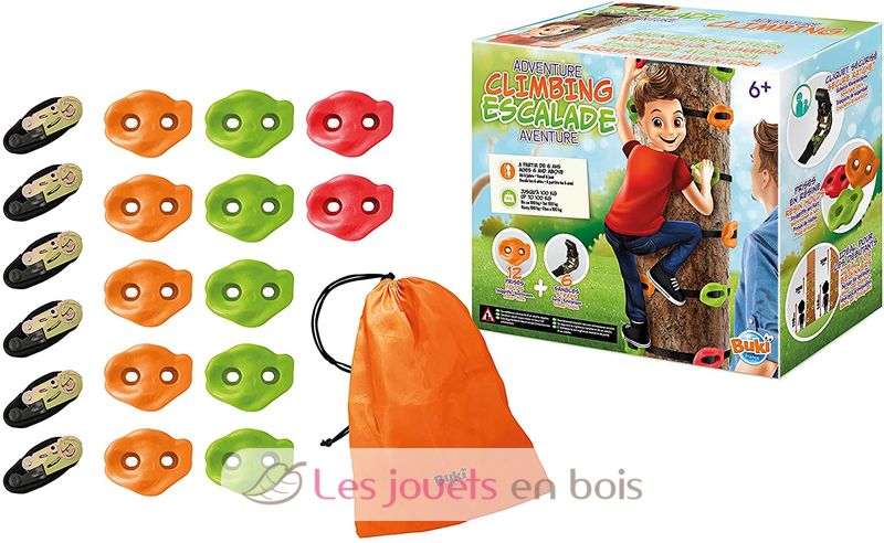 6 straps and 12 holds to install quickly and easily around a tree to create adventure routes.