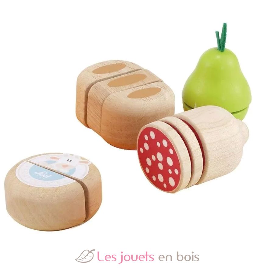 Appetizer wooden board with cheese and sausage to do like the grown-ups! Ideal for playing, from 2 years old.