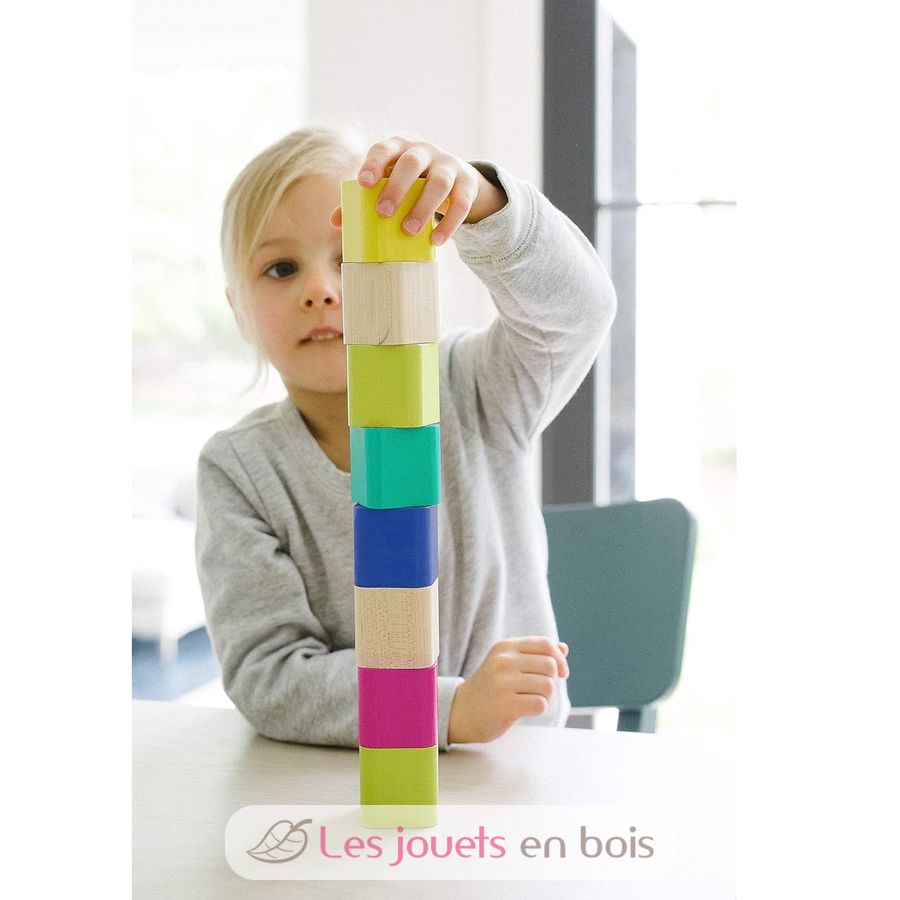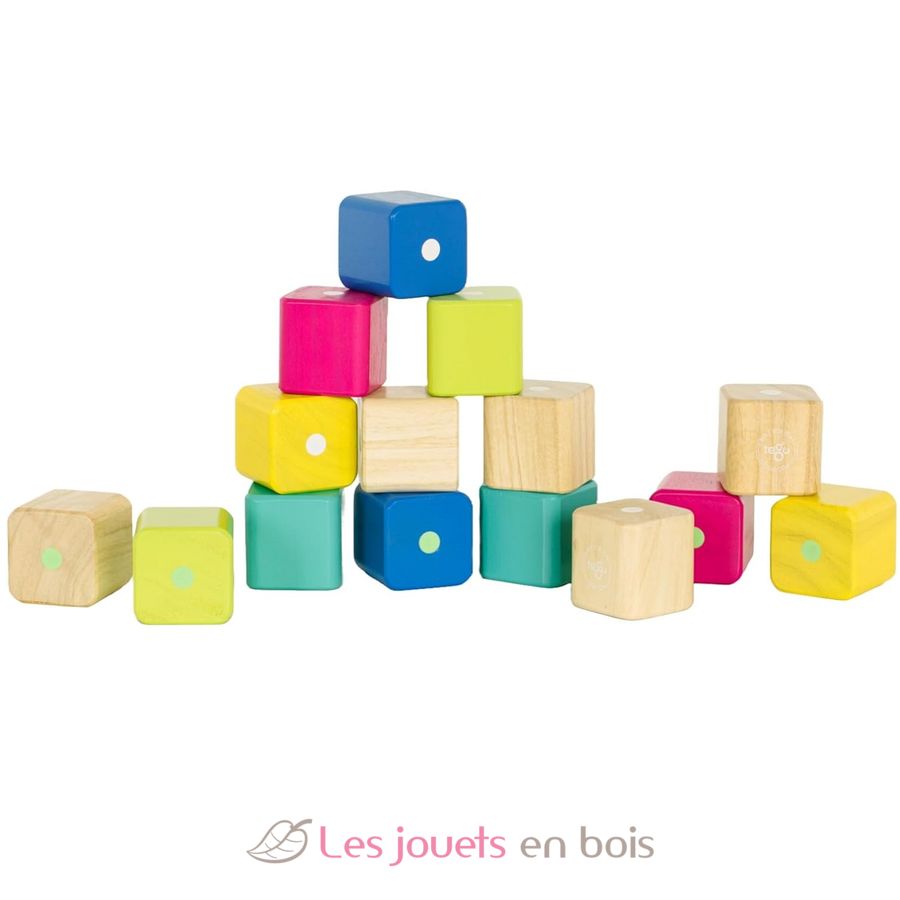 This set includes 15 wooden magnetic blocks easy to stack for small hands.