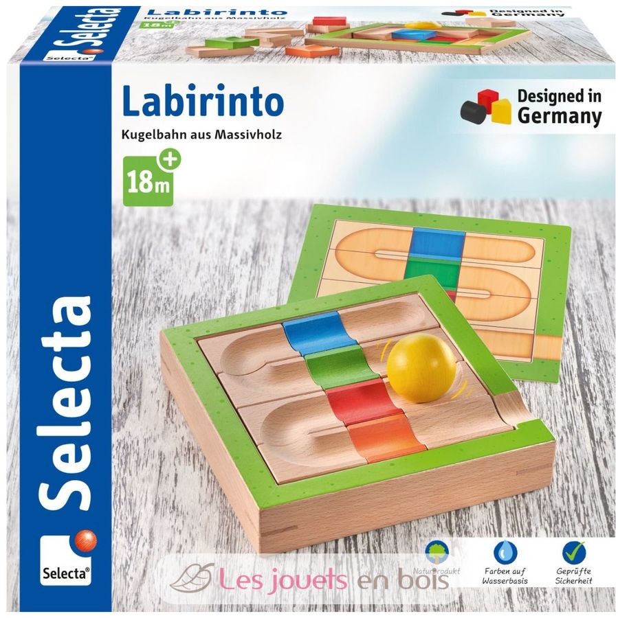 Ball track made from solid wood, a marble run made by Selecta.