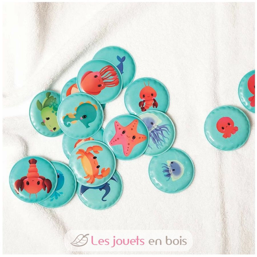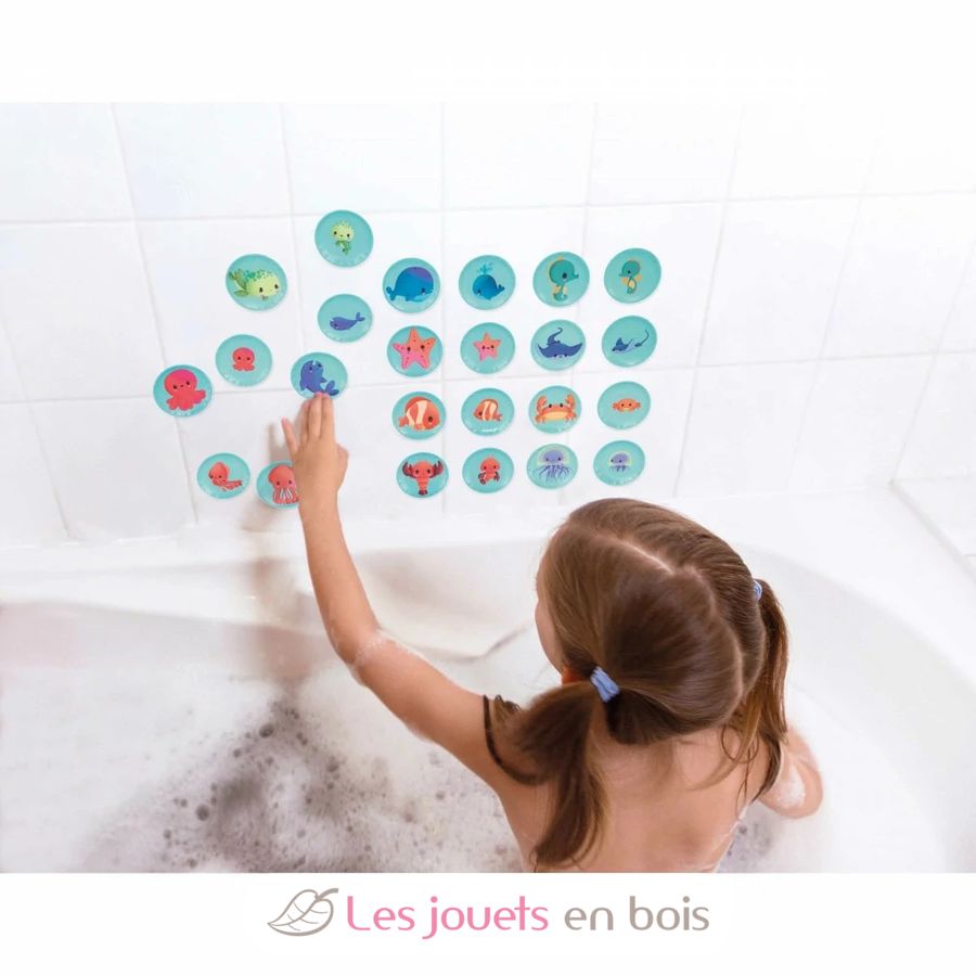 This bath game is composed of 24 foam cards that float and hold onto the earthenware when wet. A water game that will develop your child's dexterity and memory.