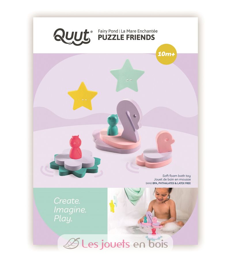 Bath puzzle Fairy Pond, 10 pieces made out of soft foam and 2 finger puppets, made by Quut. Item number 173144.