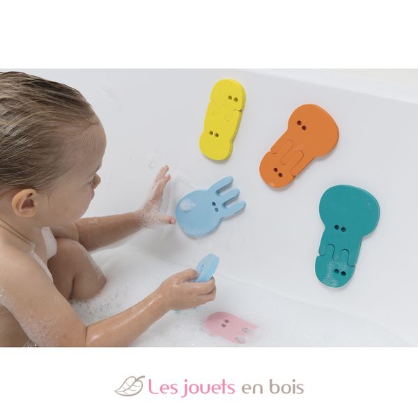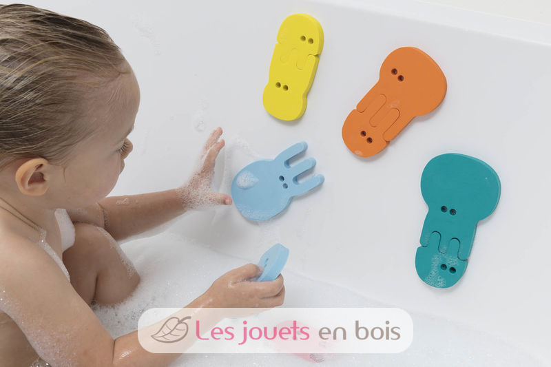 Bath time is even more fun with this intriguing jellyfish bath puzzle. Matching the shapes and colors of the different jellyfish helps your little ones improve their fine motor skills. The shapes float on water and easily stick to the side of the tub or shower to make your own creations.