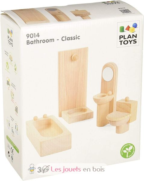 Bathroom - Classic, wooden furniture for doll house made by Plan Toys, item number PT9014.