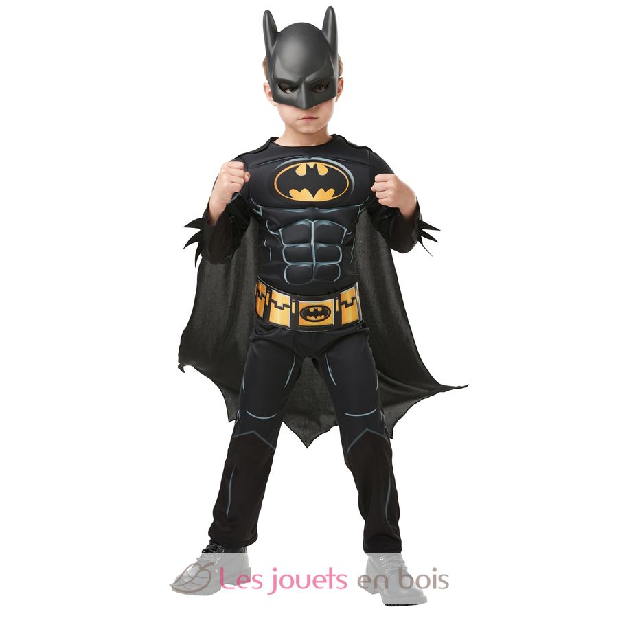 Batman costume with padded muscles, for children ages 7 to 8 years (approximately 122 to 128 cm tall).