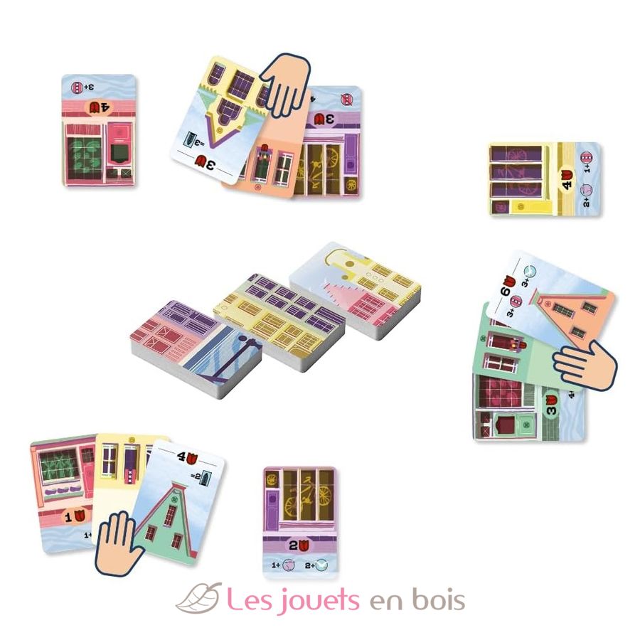 Choose the best card from your hand to lay before passing them to your opponents. You must complete the objectives of your Shops and Rooftops, while keeping an eye on the colors to score the most points and win!