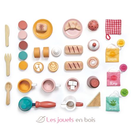 Encouraging language skills and manual dexterity, children can make a pretend Cappucino with various toppings, brew them a cup of tea, toast a panini, or serve their customers a variety of sandwiches and pastries.