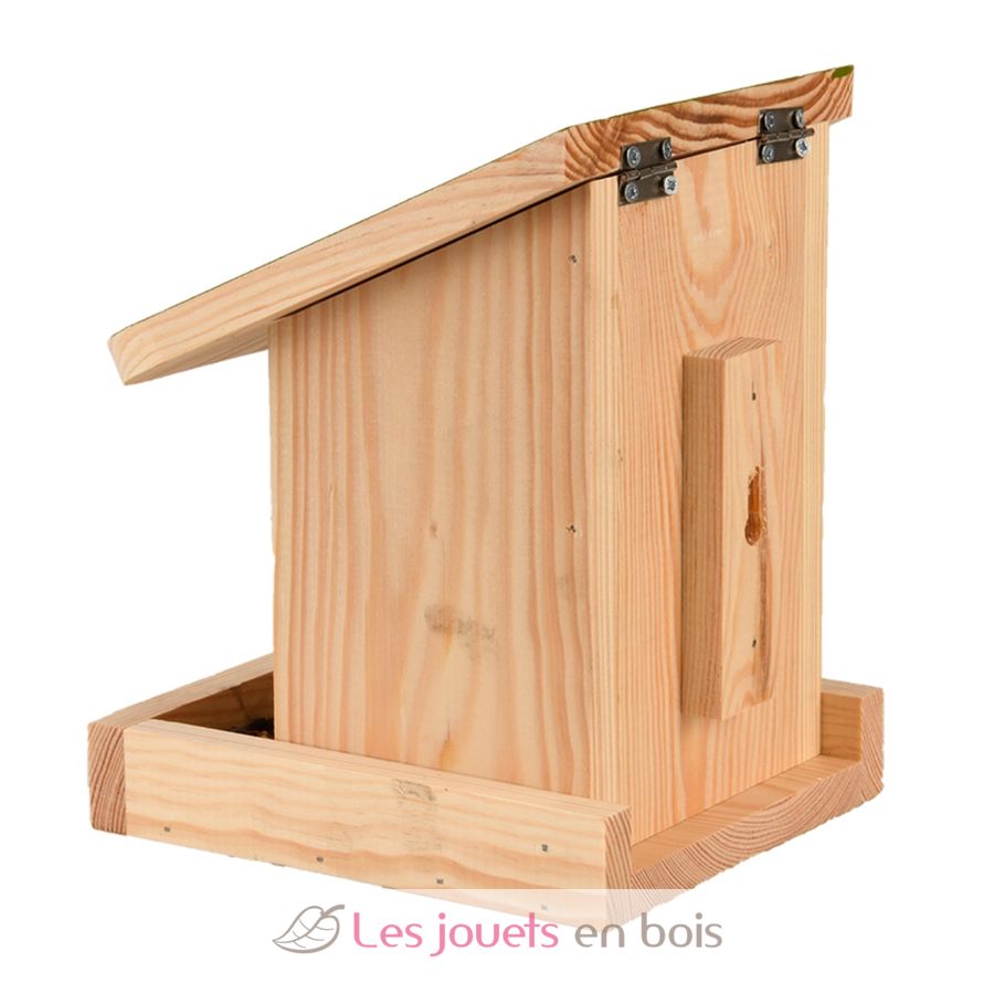 This functional silo feeder has several practical properties. Filling is easy, just lift the roof. The raised rim acts as a perch, making a separate feeding tray which helps to lower the risk of spreading diseases.