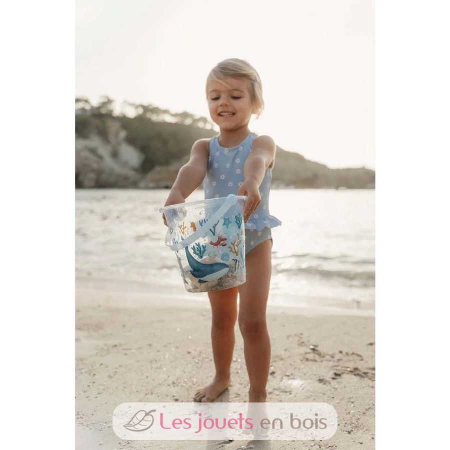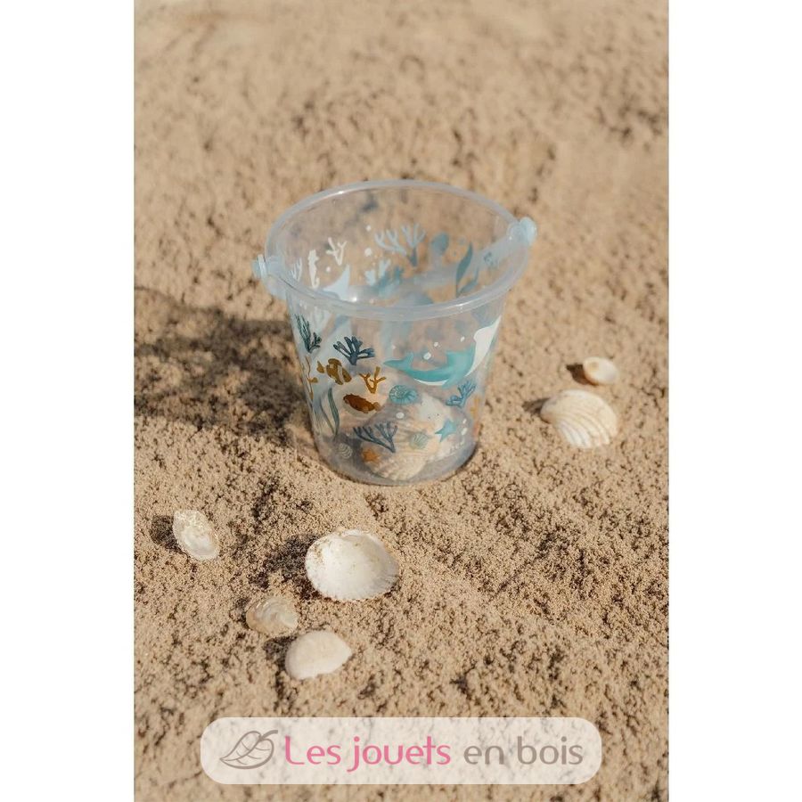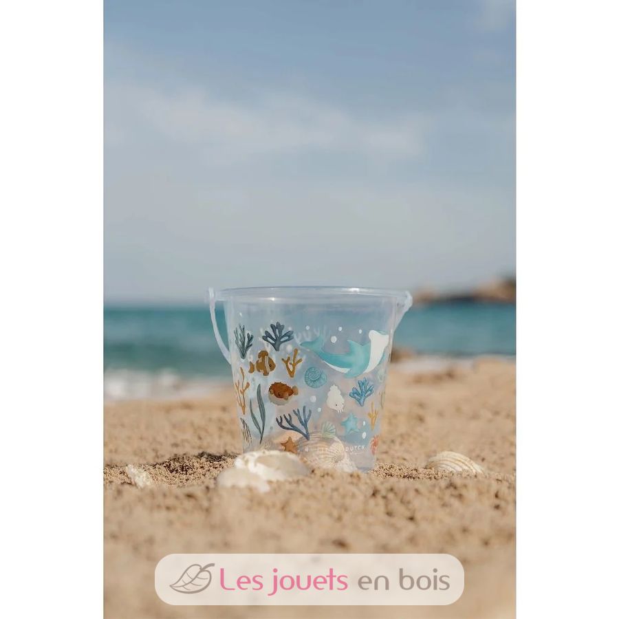 With its transparent design and colorful ocean-themed patterns, this bucket is the perfect companion for building sandcastles or collecting water.
