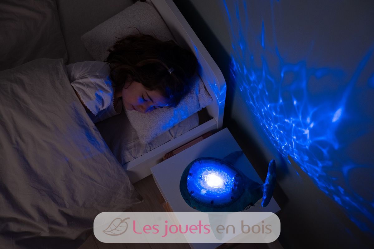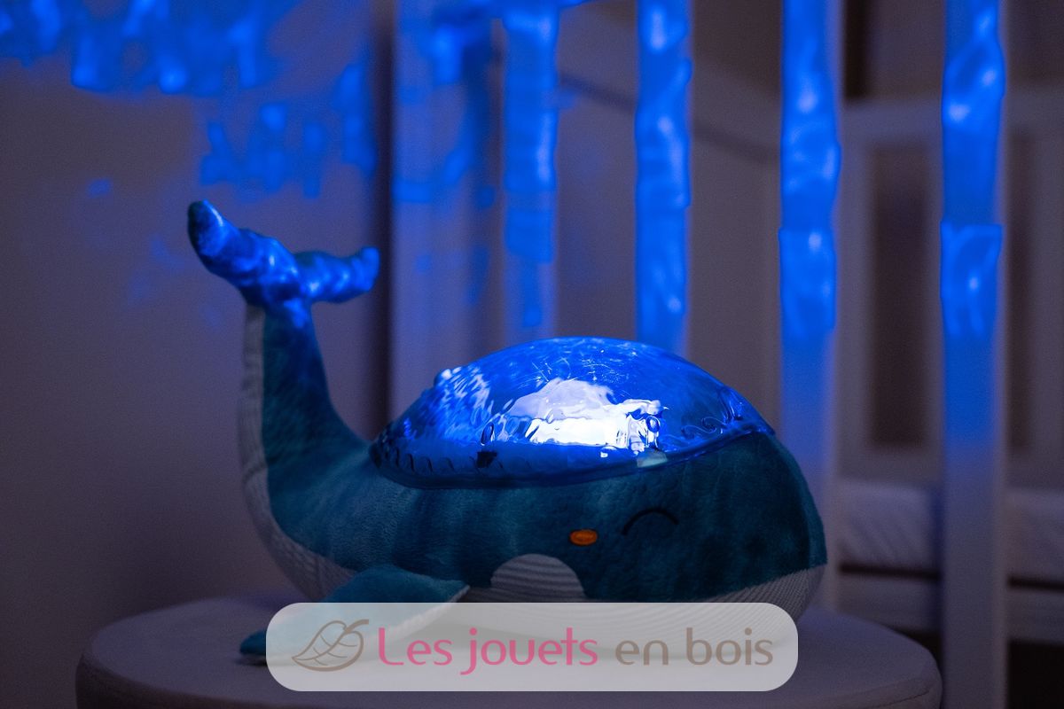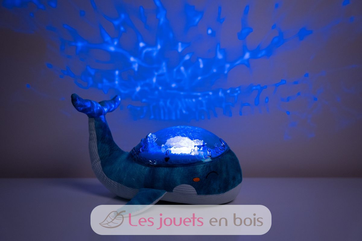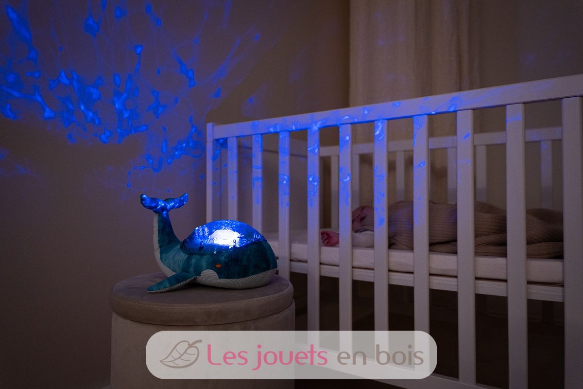 This Tranquil Whale nightlight soothes baby and reassures children who are afraid of the dark. A soft plush during the day, it transforms into a nightlight at night. Its underwater light effect is magical, thanks to the projection of moving waves. Melodies and white noises will soothe the little ones to help carry them away to dreamland.