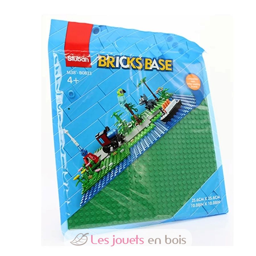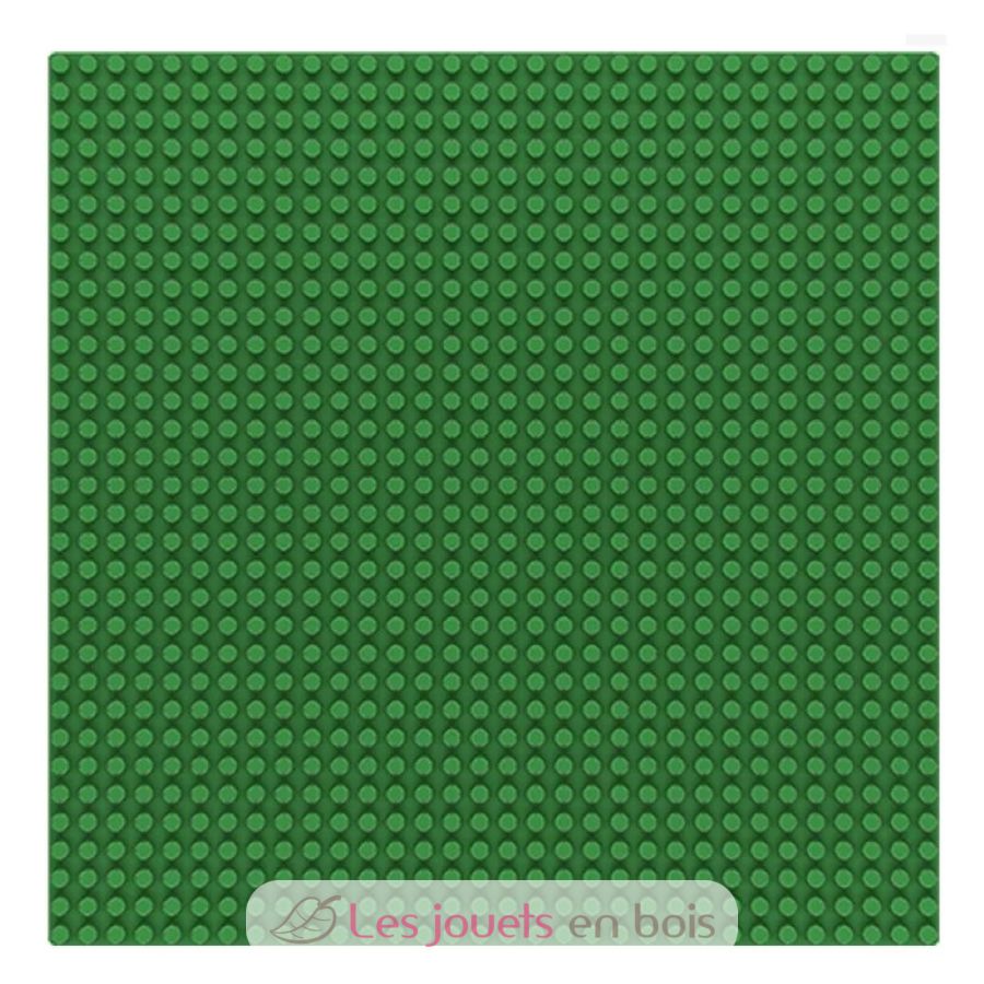 Base plate for building toy bricks. Dimensions: 25.6 x 25.6 cm. Green color.