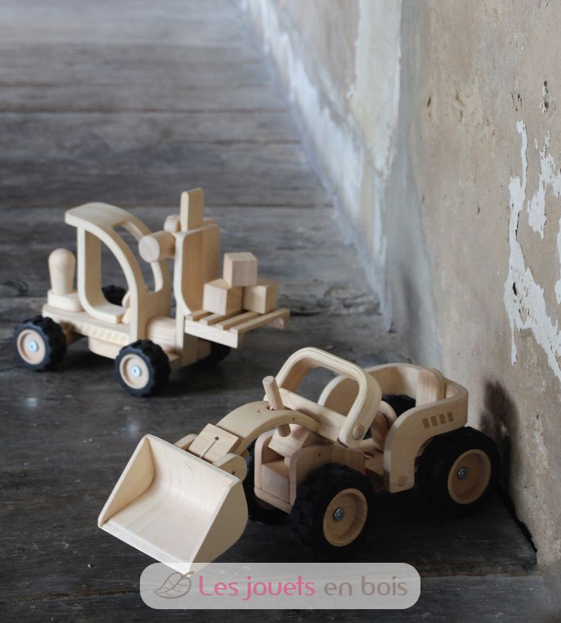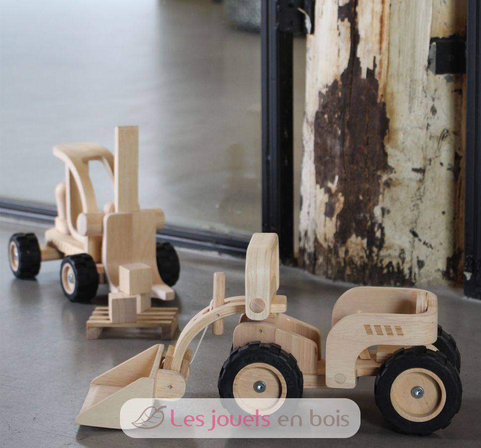 Children can undertake any job site with this impressive bulldozer. The large handle is used to raise and lower the blade and another wooden lever at the front can also rotate the blade to the left or right. The unpainted finish of the wood gives this bulldozer, with generous dimensions, an undeniable look. A bulldozer - Limited edition - made from recycled rubberwood, with large, thick, natural rubber wheels that allow you to ride on any type of terrain. This bulldozer is part of the collector's edition of PlanToys. Discover the fire truck or the bulldozer for a complete collection!