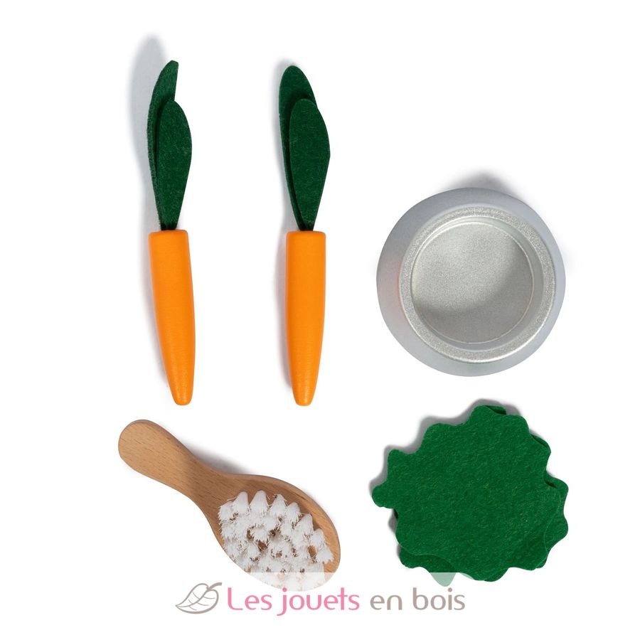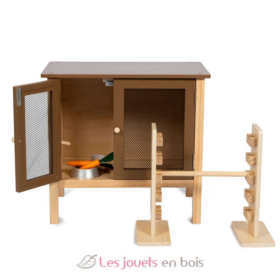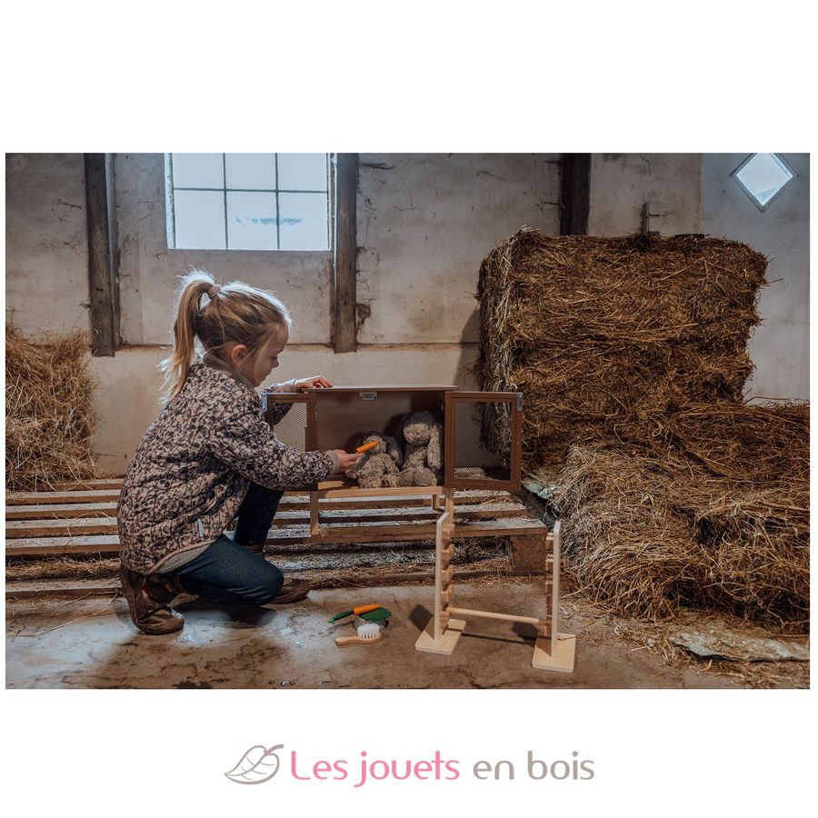 Discover this wooden rabbit hutch and its accessories so that your child has fun taking care of their stuffed rabbit.