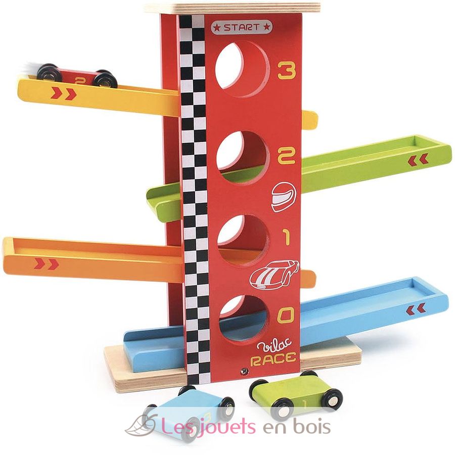 Cascade Car racing, wooden Vilac brand. The cars run down the ramps one after the other ... Ever faster Comes with three wooden cars of different colors. A ejouet Wooden Vilac brand (since 1911) Ref: 1508 Prohibited - 3 years as it contains small parts