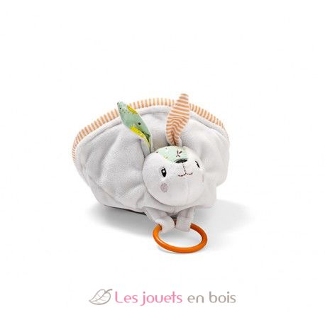 Hang César from the baby seat and he will go everywhere with you. But what’s this? Surprise! César has a trick up his sleeve : he is reversible and can transform into Célestin the rabbit holding out a flexible teething ring.