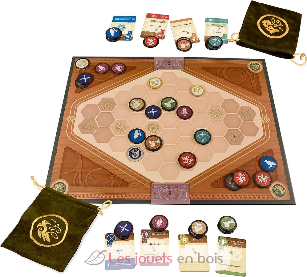 In this strategy game, each player leads an army of 4 units, each with a unique combat tactic. On each turn, the players draw three pieces representing these units from their bag. They must then define the best strategy for using them: deploy the unit or reinforce the one already in place, maneuver or even attack... You will have to imagine plans action plan to recruit more troops, limit your losses, manage your units in the field but also in reserve. Victory will belong to the player who manages to control six territories first.