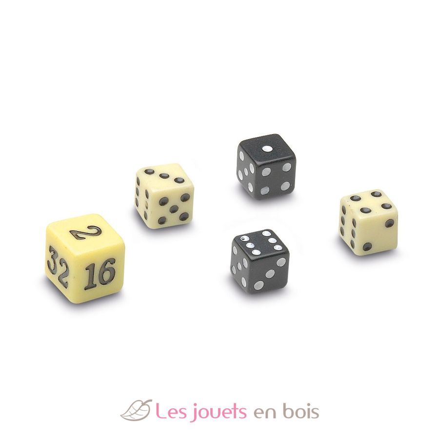 Game board size: 29 x 29 cm. The chips are made of wood and the dice are resin.