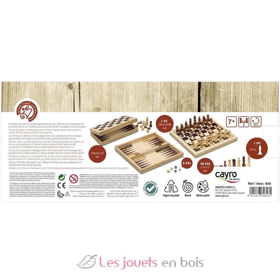 Three strategy classics presented in wood for that extra warmth in your games : Chess, Checkers and Backgammon.