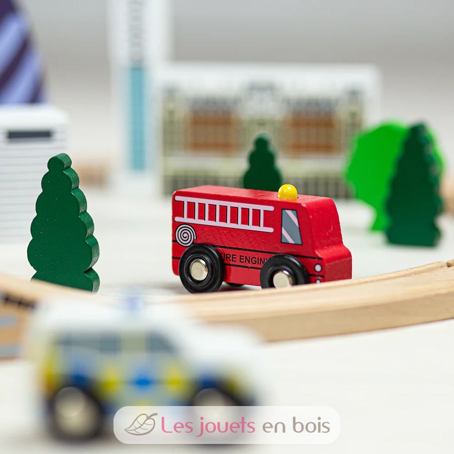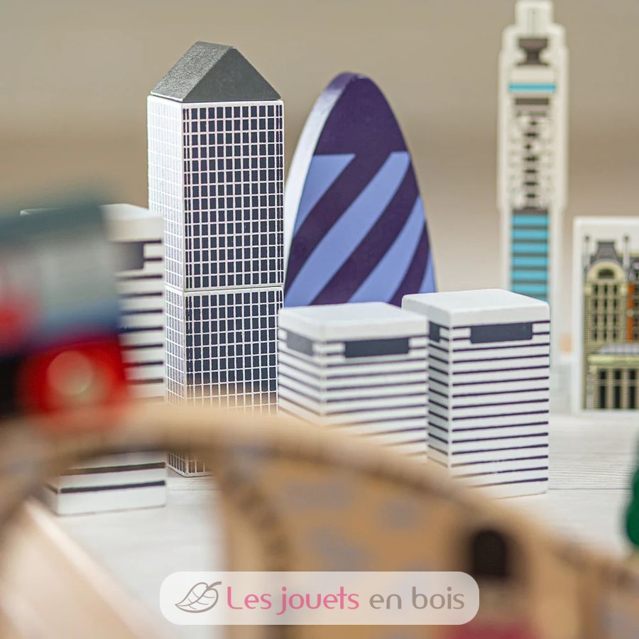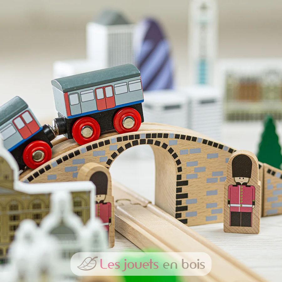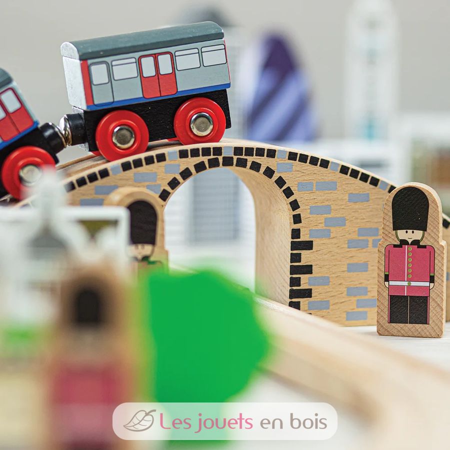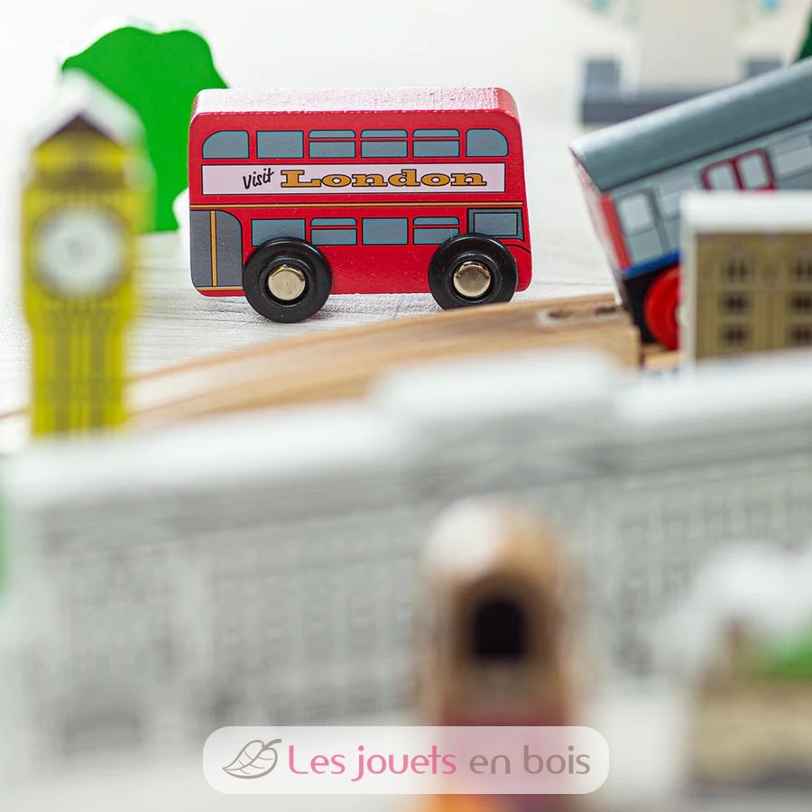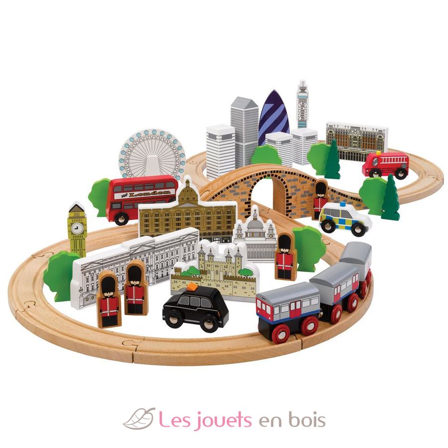 With over 50 pieces, this set includes 17 pieces of wooden track, an underground train made up of 3 pieces, trees, iconic buildings including the London Eye, Buckingham Palace, Big Ben, the Guerkin, Harrods and more; plus recognisable vehicles including a Black Cab and Red Double Decker Bus.