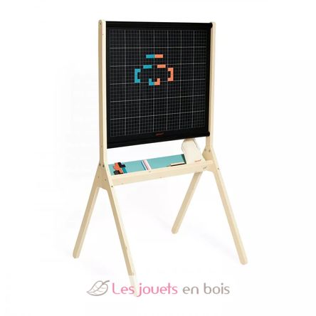 This wooden board comes with essential accessories so little ones can begin writing and drawing straight away: 3 pieces of chalk, 1 brush, 20 geometric pixel magnets, in addition to a games booklet to help set up fun activities on the children's board!