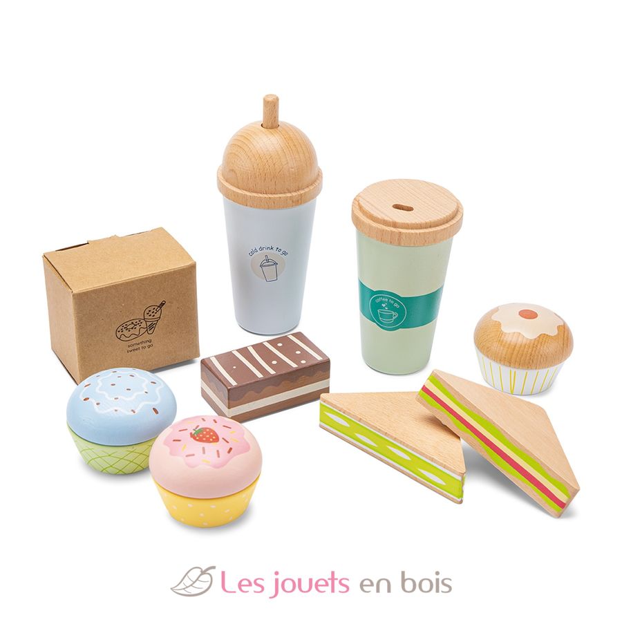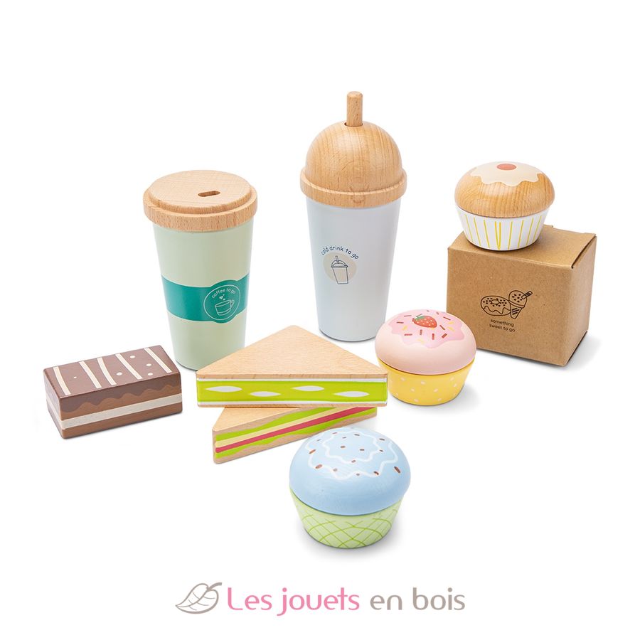 This playful set contains sweet treats and drinks to take-away for stimulating creativity, imagination, and pretend play.
