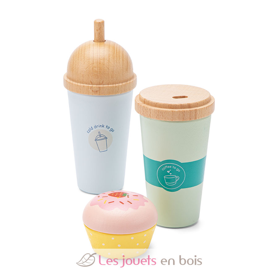 Coffee to go play set, a wooden toy for role playing made by New Classic Toys.