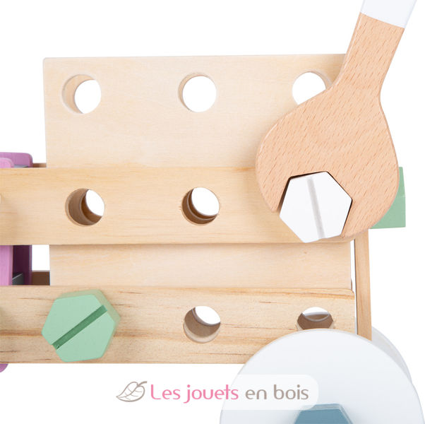 Building and tinkering with a Nordic flair! With drilled holes, threaded cubes, screws, nuts, wooden discs, and construction panels, the young, aspiring construction engineers can really let loose. With the help of the wrench and screwdriver, all the parts can be assembled properly. Whether it's a tractor, a train engine, or a crane, there's no limits to creativity here. Also, the finished, self-built models are great for playing with afterwards!