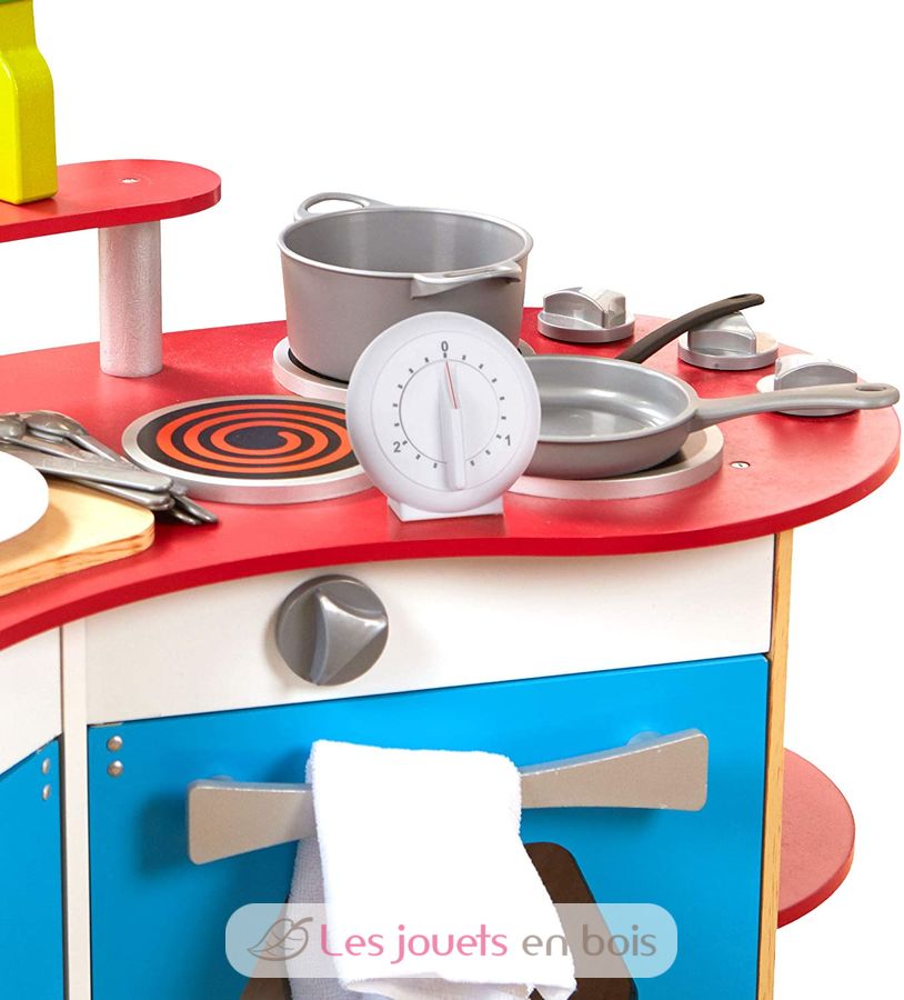 This wooden play kitchen has everything a young chef needs. With a removable sink, three-burner cooktop, oven with clicking knobs, refrigerator, storage shelves, "cutting board," and real, working timer, this play kitchen has the perfect ingredients for hours of pretend-play fun!