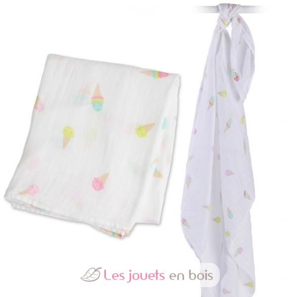 Cotton muslin swaddle - Ice cream 120 x 120 cm made by Lulujo, item number 121-000-025.