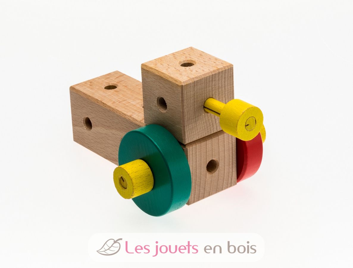 Based on assembling wooden blocks, connecting rods and precision-drilled wheels, Matador building sets offer a wide variety of building options to create a multitude of simple models such as planes, cars, minifigures , but also more complex and technically advanced landscapes.
