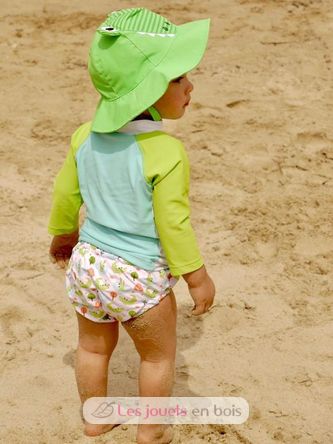 With this swimsuit and hat set (12-24 months), your child will be irresistible at the beach or at the pool.