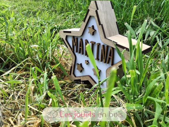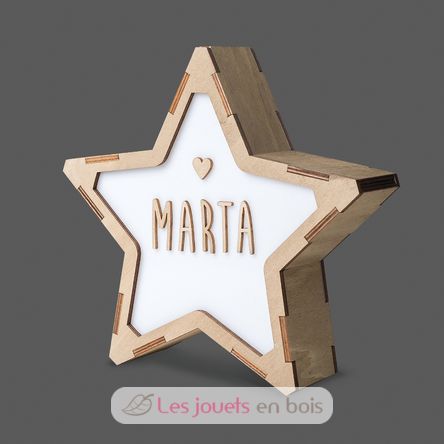 Handcrafted in a wood cutting workshop in Spain, this luminous star is easily personalized thanks to the wooden letters and symbols that accompany it and brings a delicate touch to the decoration of a child's room. The poplar wood used for its manufacture is PEFC certified and comes from sustainably managed forests.