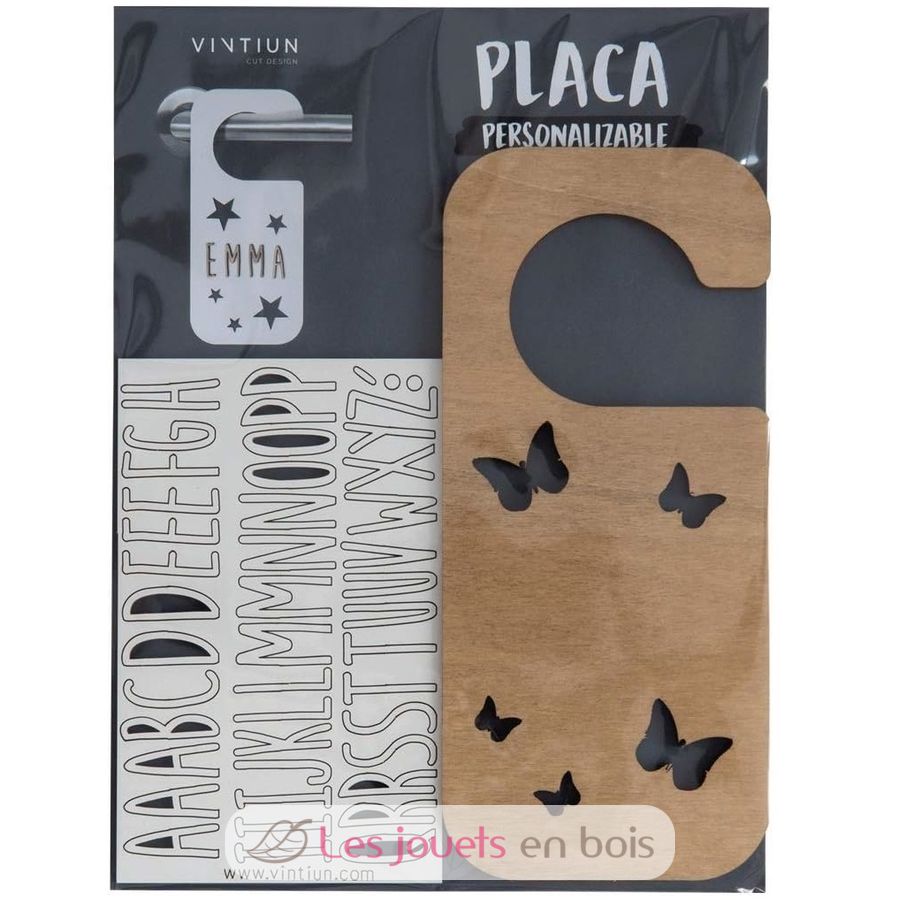 The kit includes: 1 wooden door hanger; 1 sheet of self-adhesive wooden letters. Dimensions: 8,5 x 19 cm.