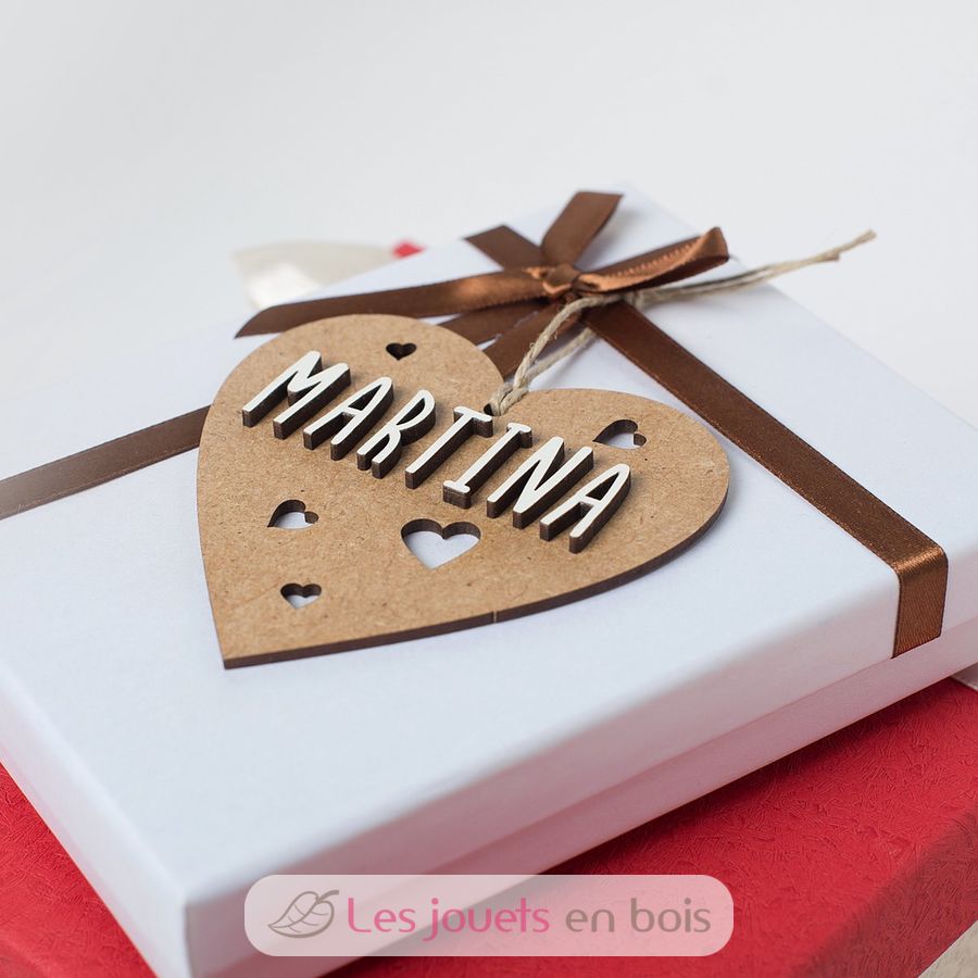 Handcrafted in a wood-cutting workshop in Spain, this wooden Christmas decoration can be easily personalized thanks to the wooden letters that come with it.
