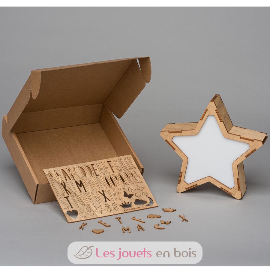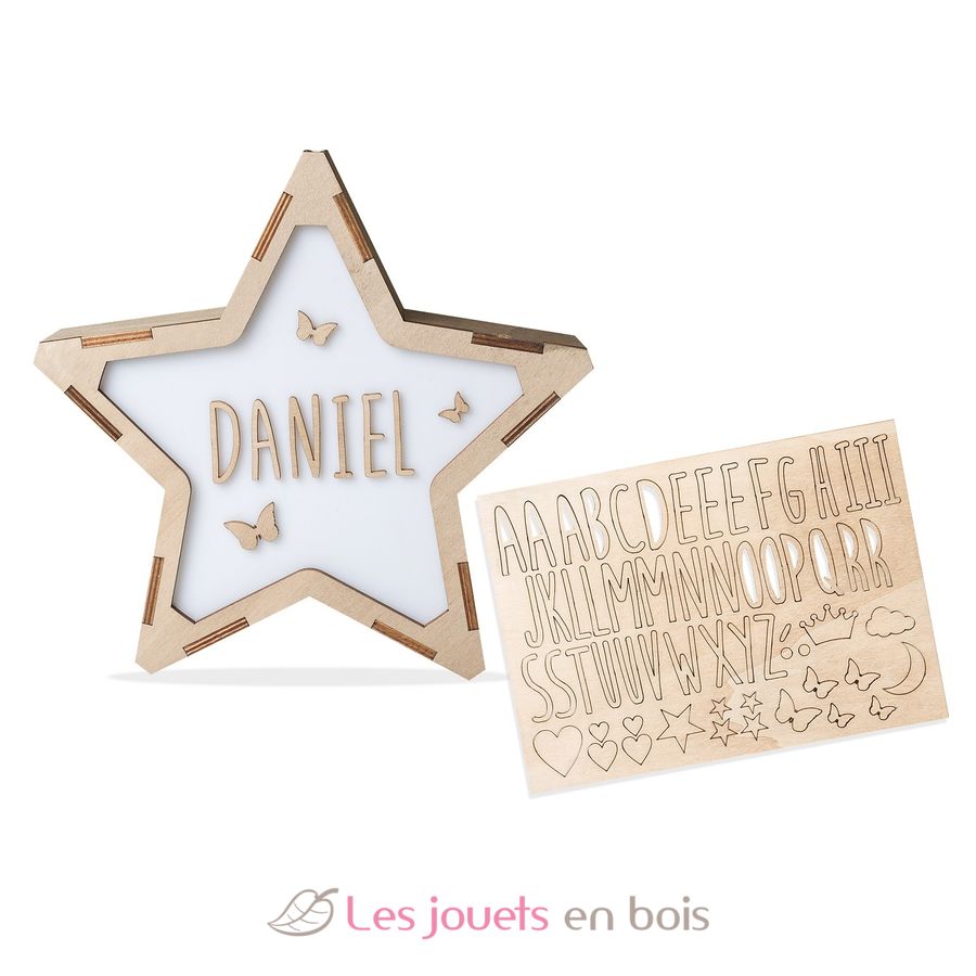 Handcrafted in a wood cutting workshop in Spain, this lighting star is easily personalized thanks to the wooden letters and symbols that accompany it and brings a delicate touch to the decoration of a child's room. The poplar wood used for its manufacture is PEFC certified and comes from sustainably managed forests.