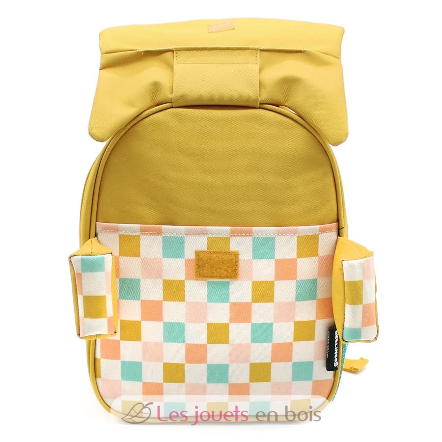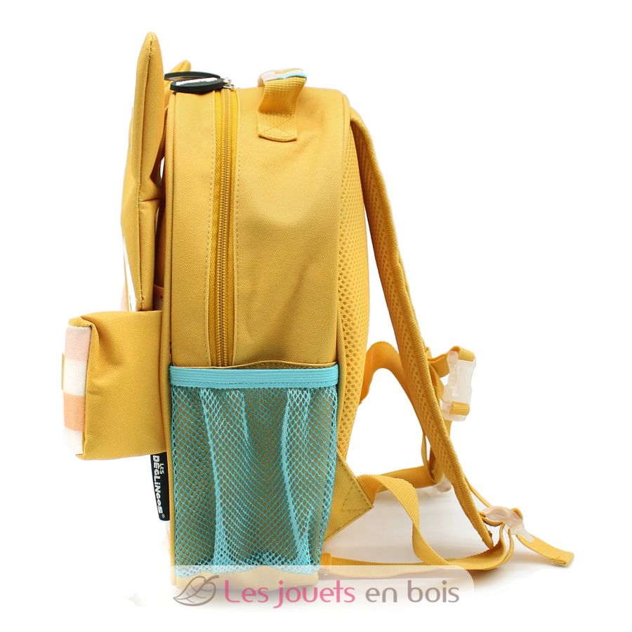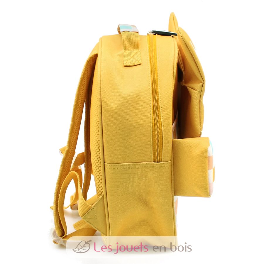 The Cyranos the fox backpack is mustard yellow and colored. Dimensions : 23 x 10 x 30 cm.
