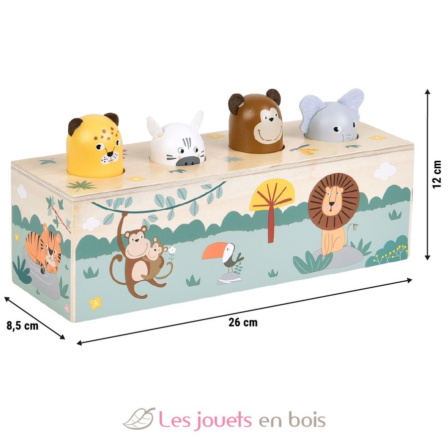 This interactive push toy made of FSC-certified wood is fascinating : pressing down on an animal makes the corresponding animal sound. This is a fun way for young explorers to learn about different animal sounds and the cause-and-effect principle while training their motor and cognitive skills.