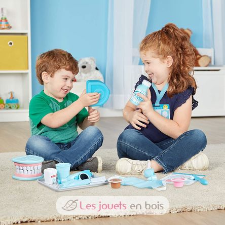 - 25-piece dentist play set with realistic pretend play dental care essentials to give cleanings, treat cavities, and fit retainers and braces on an over-sized set of pretend teeth