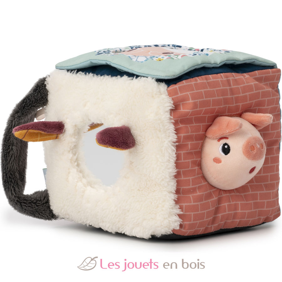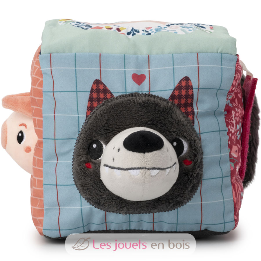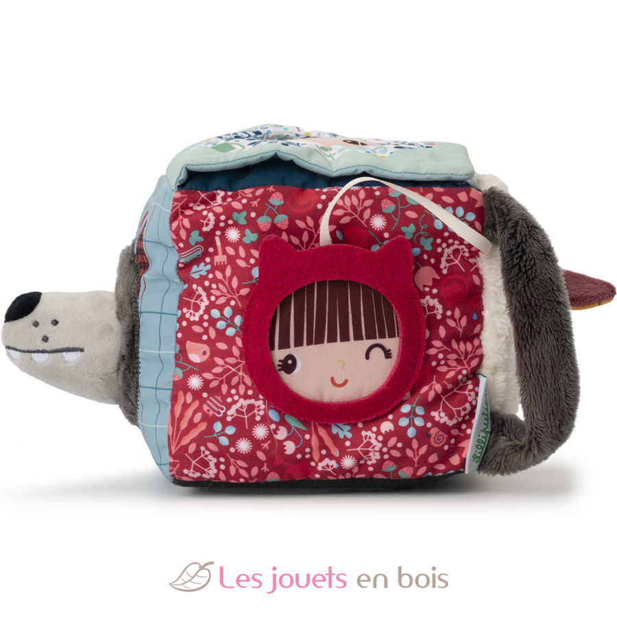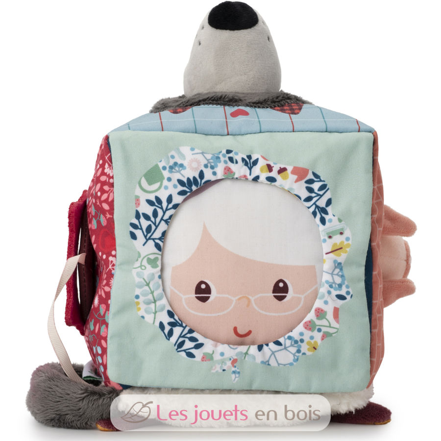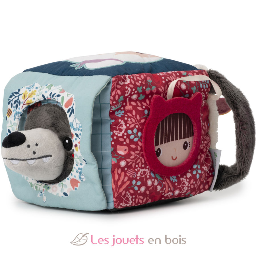 A colourful activity cube with different sounds, materials and a surprise on each side. Flaps and shapes hide Grandmother, the wolf, Little Red Riding Hood and a little pig. And what do you see in the mirror?