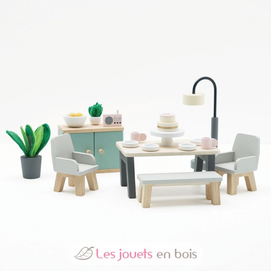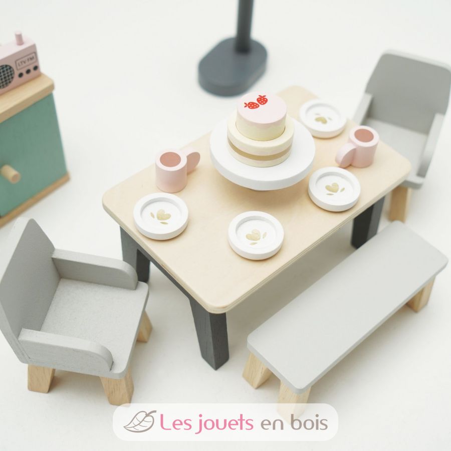 Feast your eyes on this stunning toy dining room set, the perfect addition to add a touch of modern elegance to any home of miniature.
