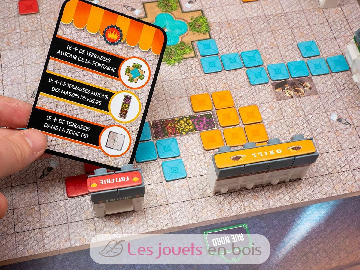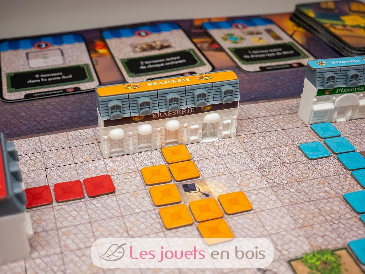 Open restaurants, build terraces, achieve objectives, win majorities to earn the most victory points and win the game!