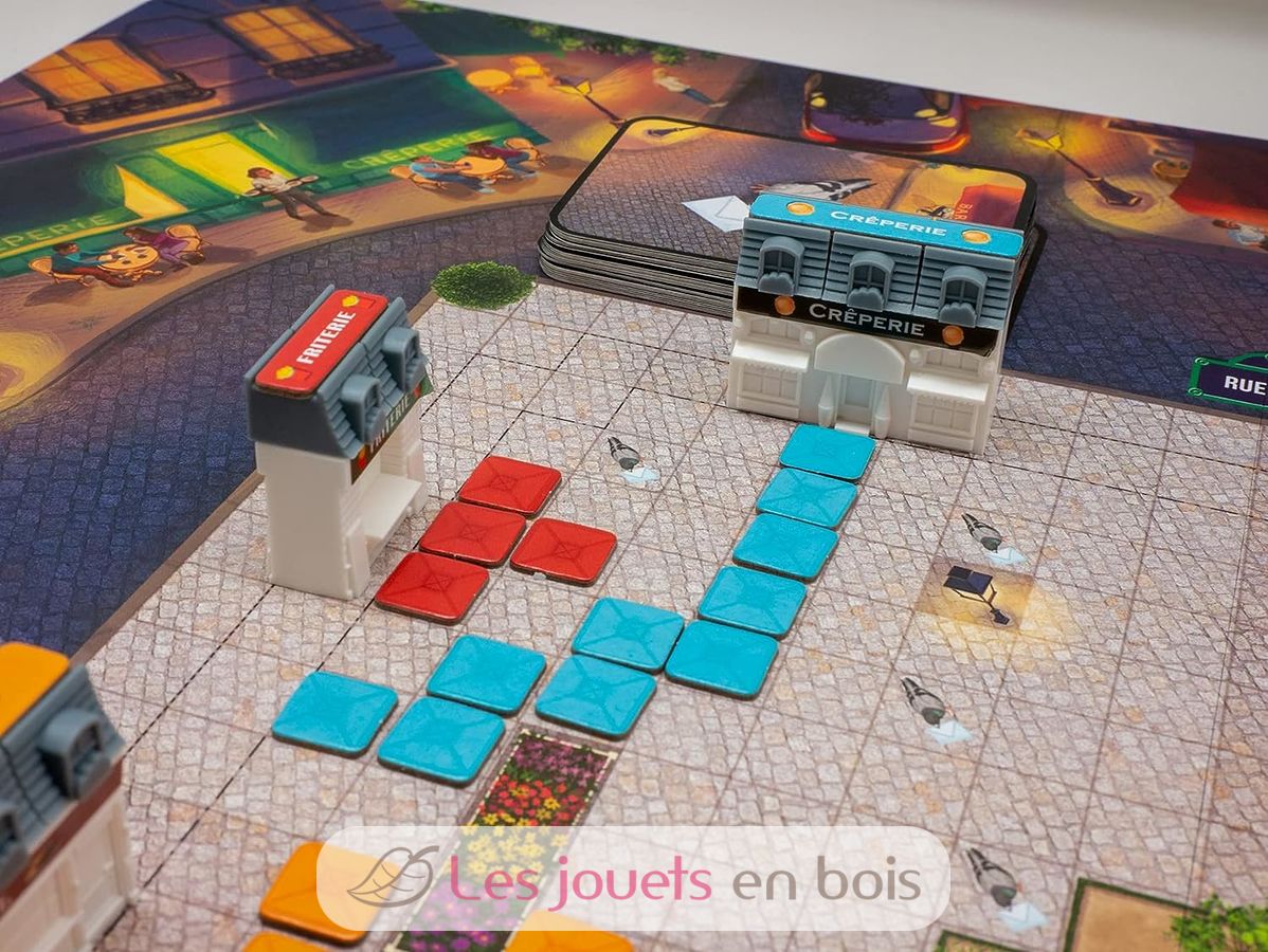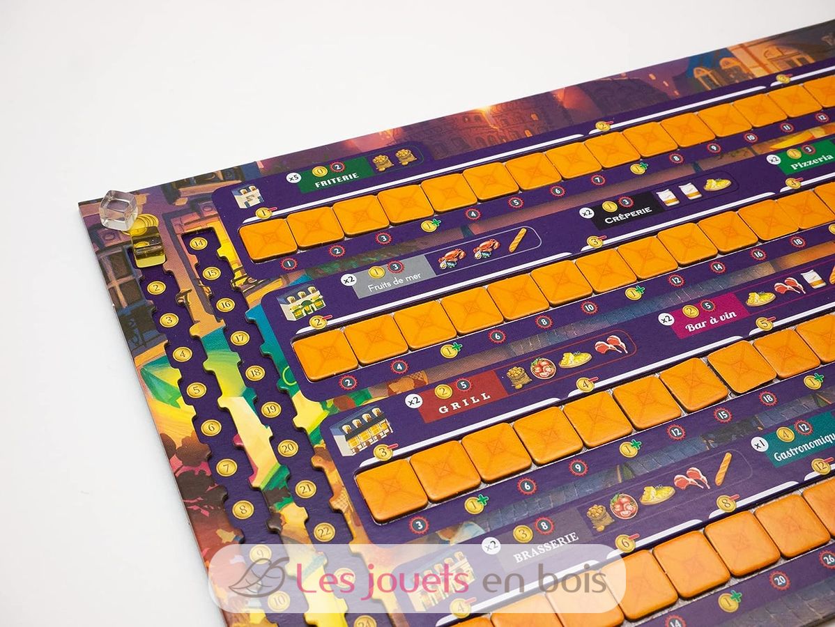 The counting of points then begins, add up the victory points for the restaurants and terraces, the points for the objectives achieved and the points earned with the majorities. The player with the most points wins.