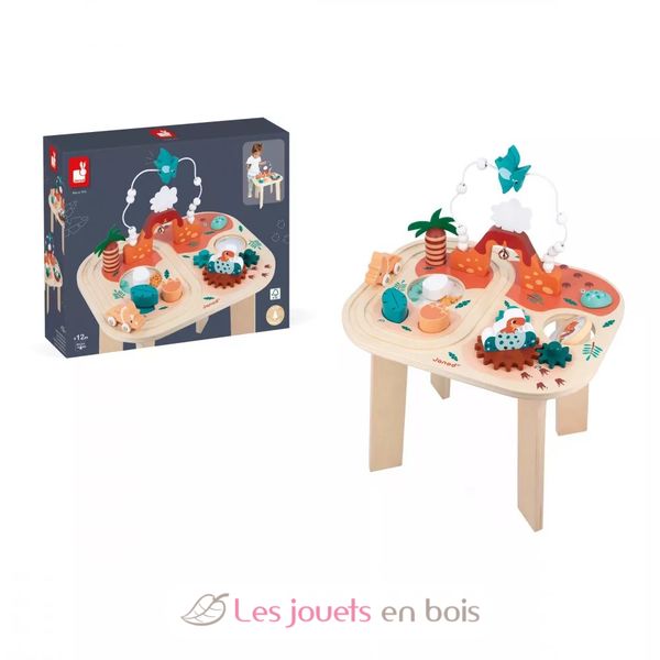 Let's head back to the prehistoric era, at a time when dinosaurs roamed the earth, much to our little ones delight! On this magnificent rust and blue-toned wooden activity table, everything comes together to transport children aged 12 months and up to an extraordinary universe: a volcano mid-eruption, baby dinosaurs hatching from their eggs and even flying creatures!